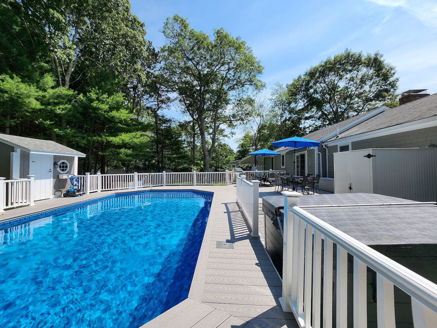 Large Deck surrounding pool (walk out onto it directly from house) and fenced-in back yard