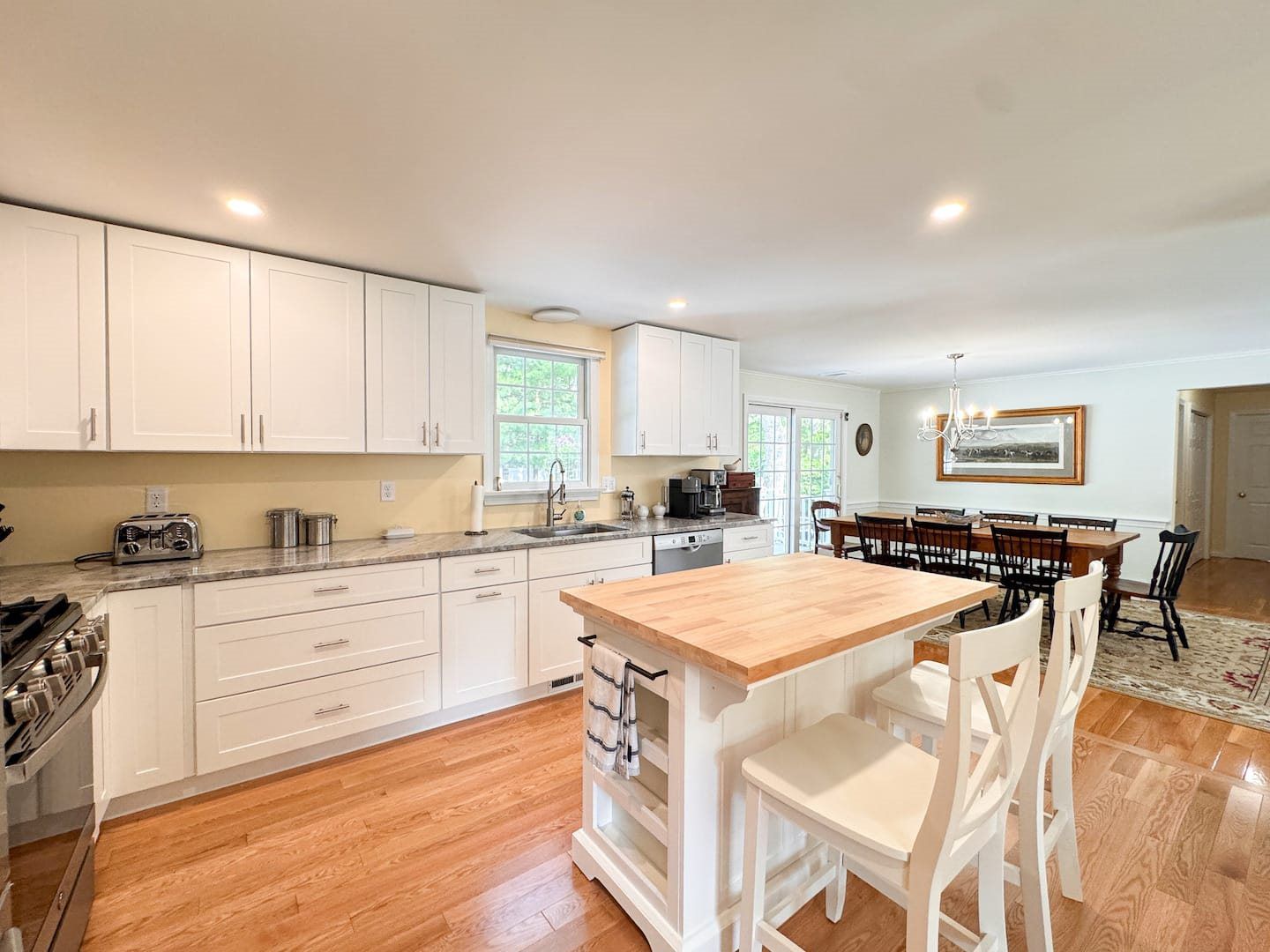Brand new, fully equipped kitchen with all new appliances (gas stove), granite countertop, island with seating for 4, plus separate kitchen table/chairs